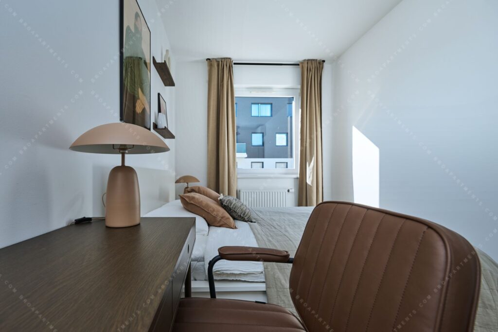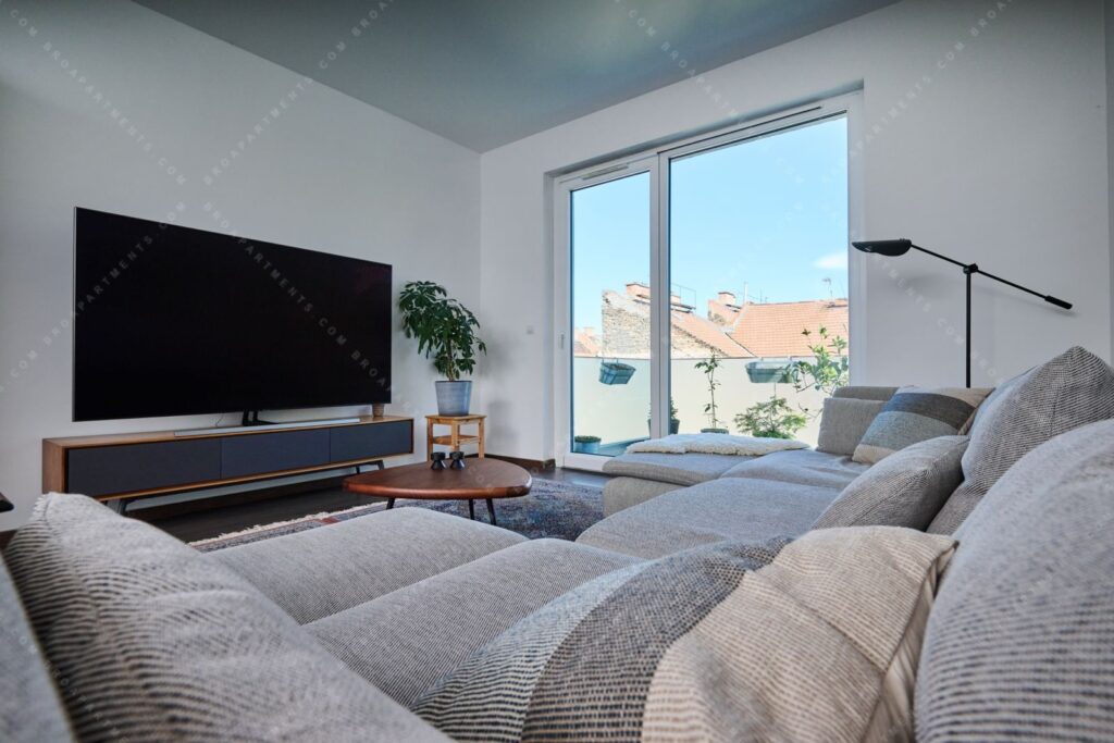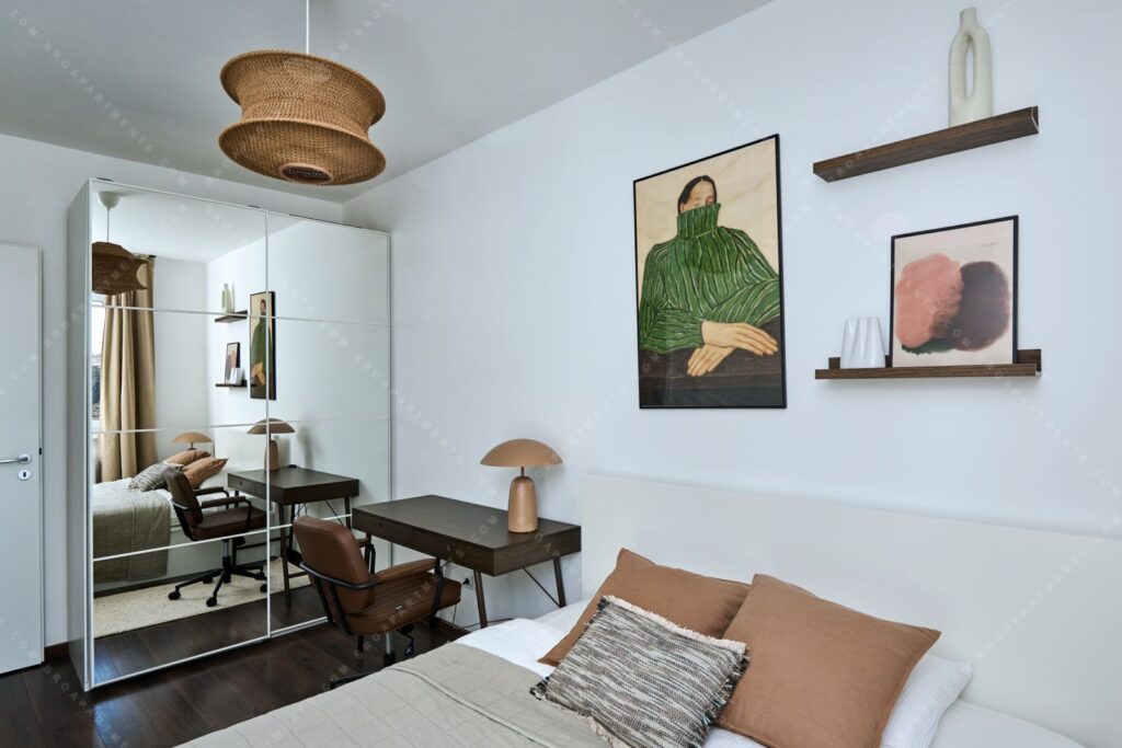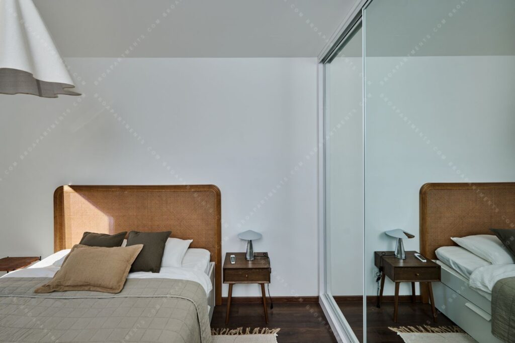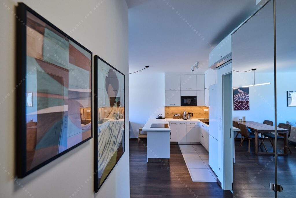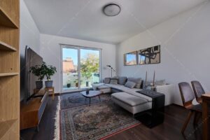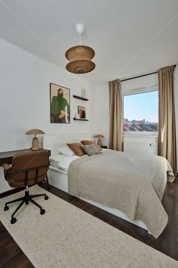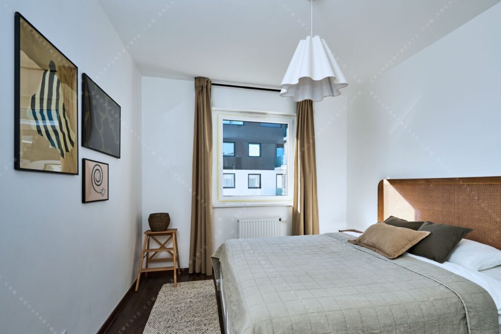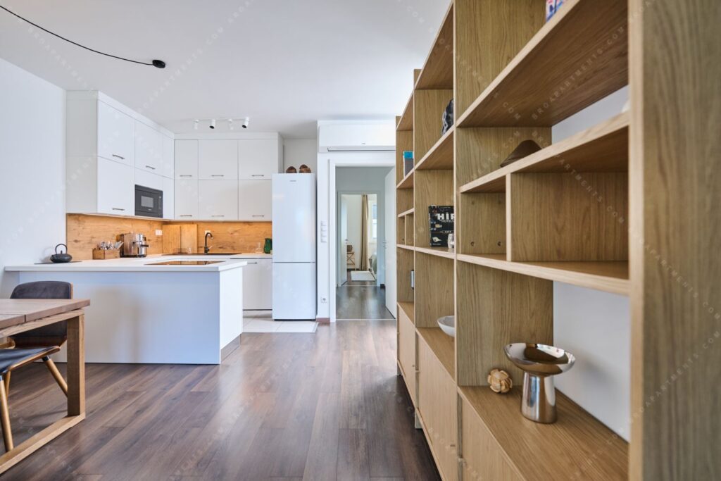 Egy frissen felújított, teljesen berendezett és teljesen felszerelt lakás a 6. emelet egy modern épület (7 emelet ezen az oldalon, 8 emelet a másik oldalon).