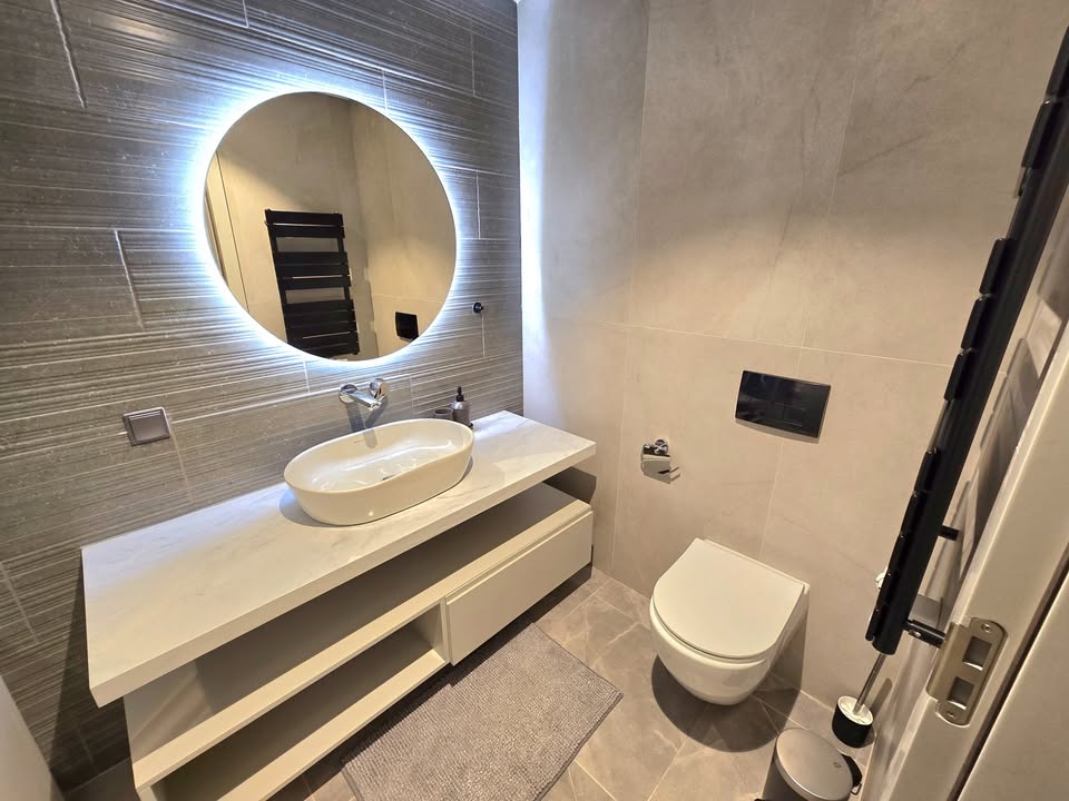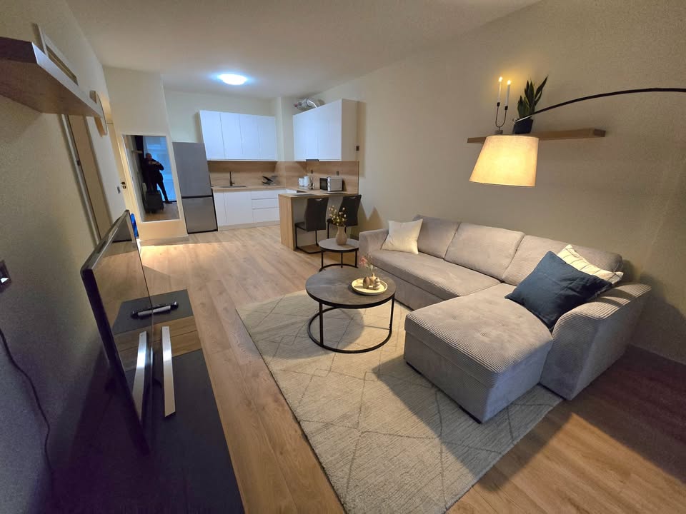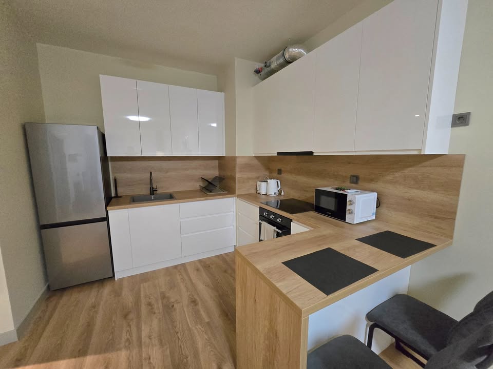 A környék kiváló kényelmet kínál: kávézók, üzletek, edzőterem és egy SPAR közvetlenül az épület alatt található. A 2-es villamos csak egy rövid sétára van, így az egész város gyorsan és egyszerűen megközelíthető. A lakás világos, modern és teljesen felszerelt, tökéletes a kényelmes hosszú távú élethez.
