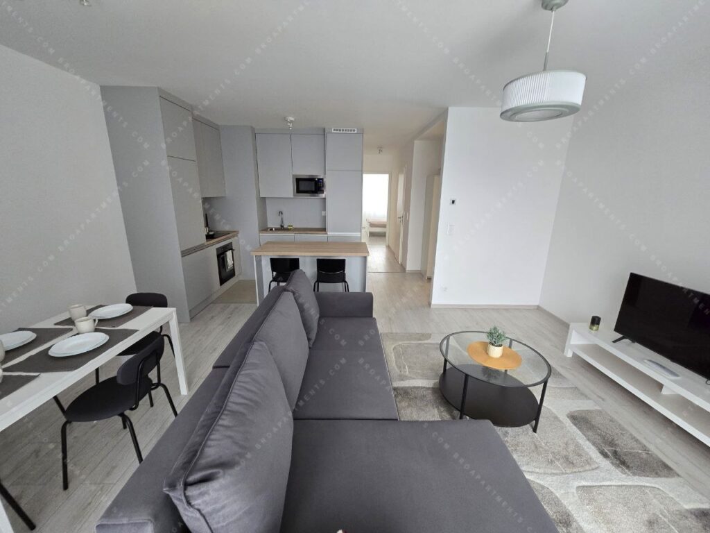 Ez a tágas, 74 m²-es, erkélyes apartman az újonnan épült (2024) és rendkívül biztonságos i6 Residence-ben található. Az ingatlan tökéletes elrendezésű, nagyon világos, és újonnan bútorozott és teljesen felszerelt. Az erkély a csendes udvarra néz, kellemes és nyugodt légkört biztosítva. Szükség esetén egy garázs is bérelhető.