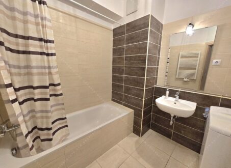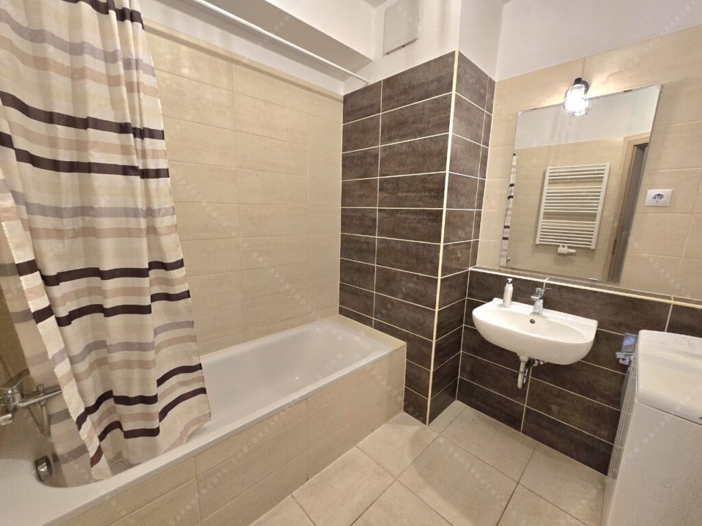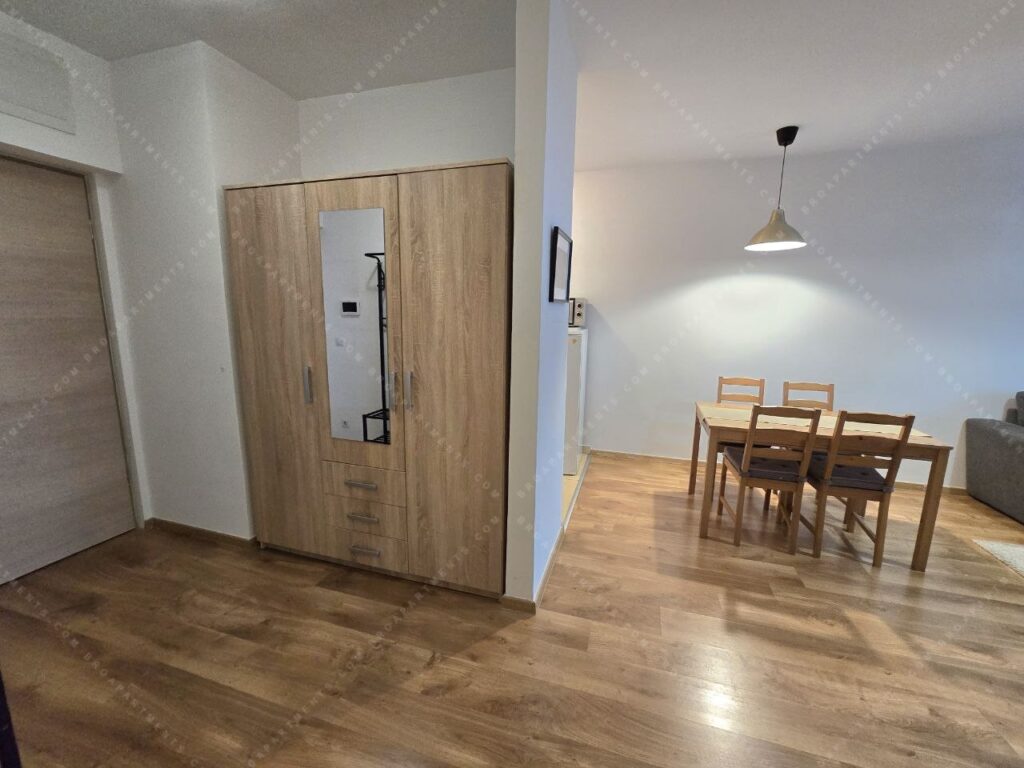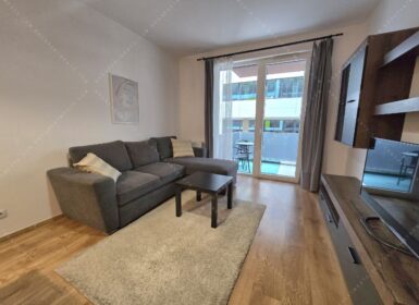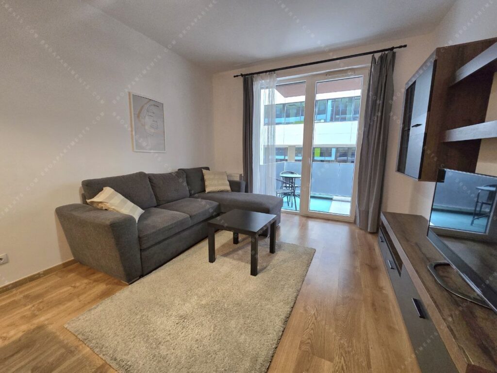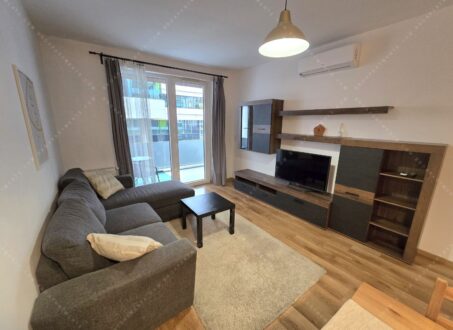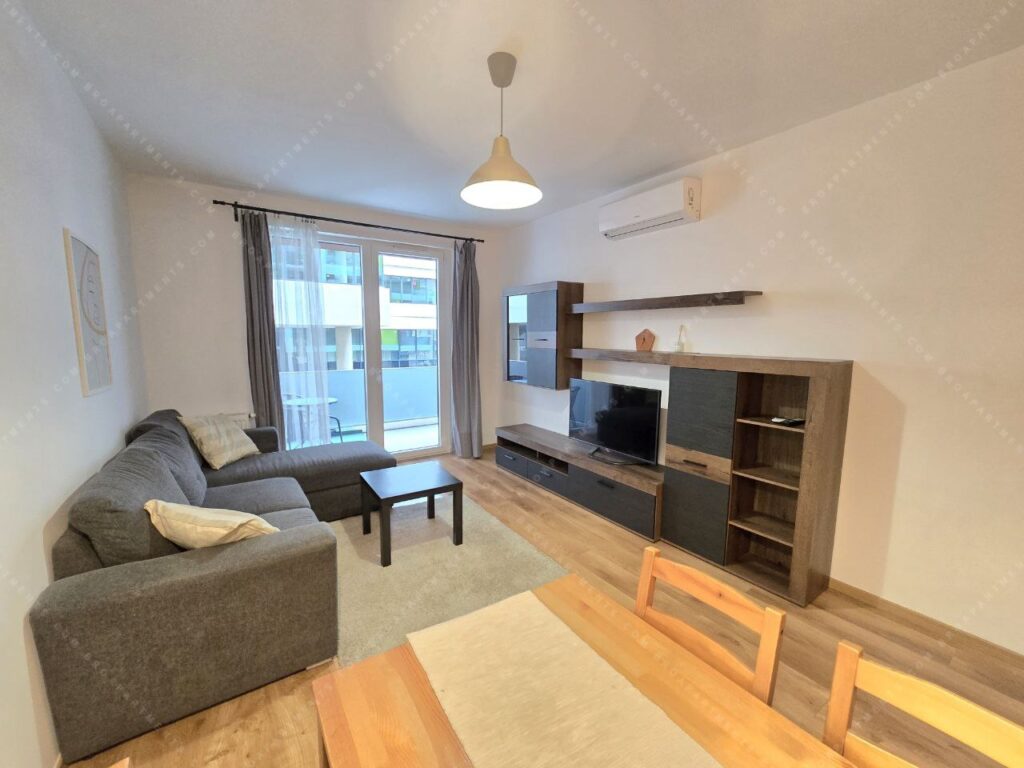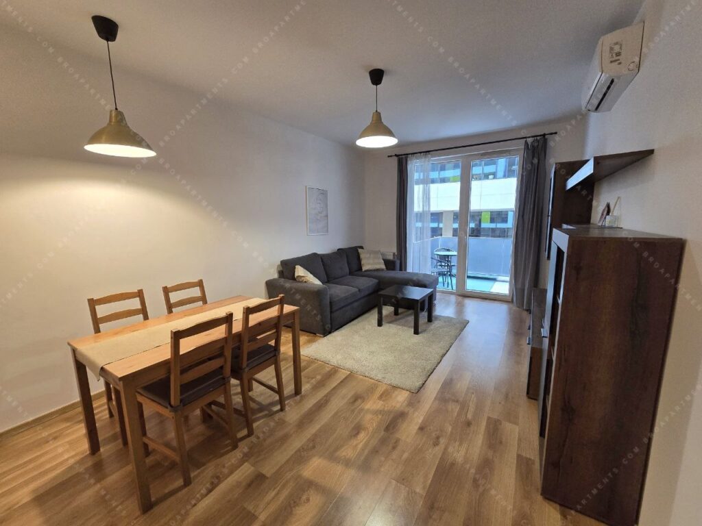 50 sqm, fully furnished and air-conditioned apartment with a balcony is available for rent on the 2nd floor of a modern building located at Corvin sétány 8, District VIII, Budapest.