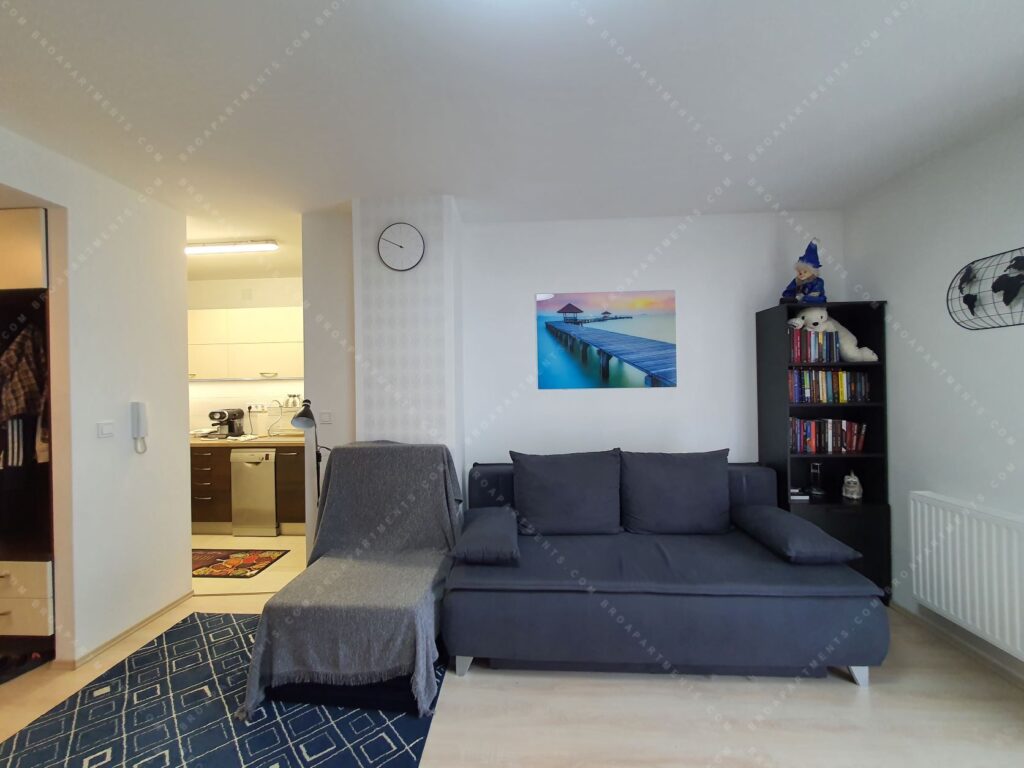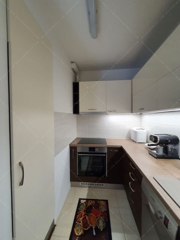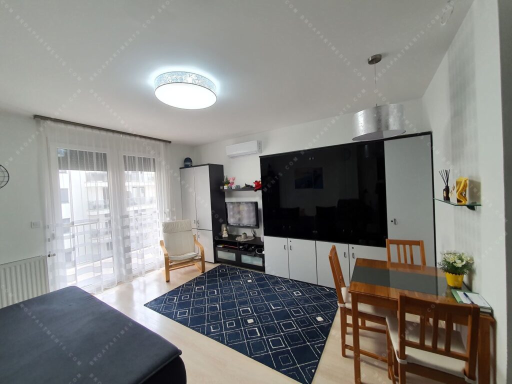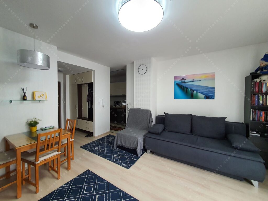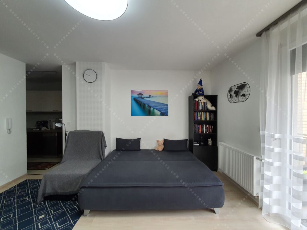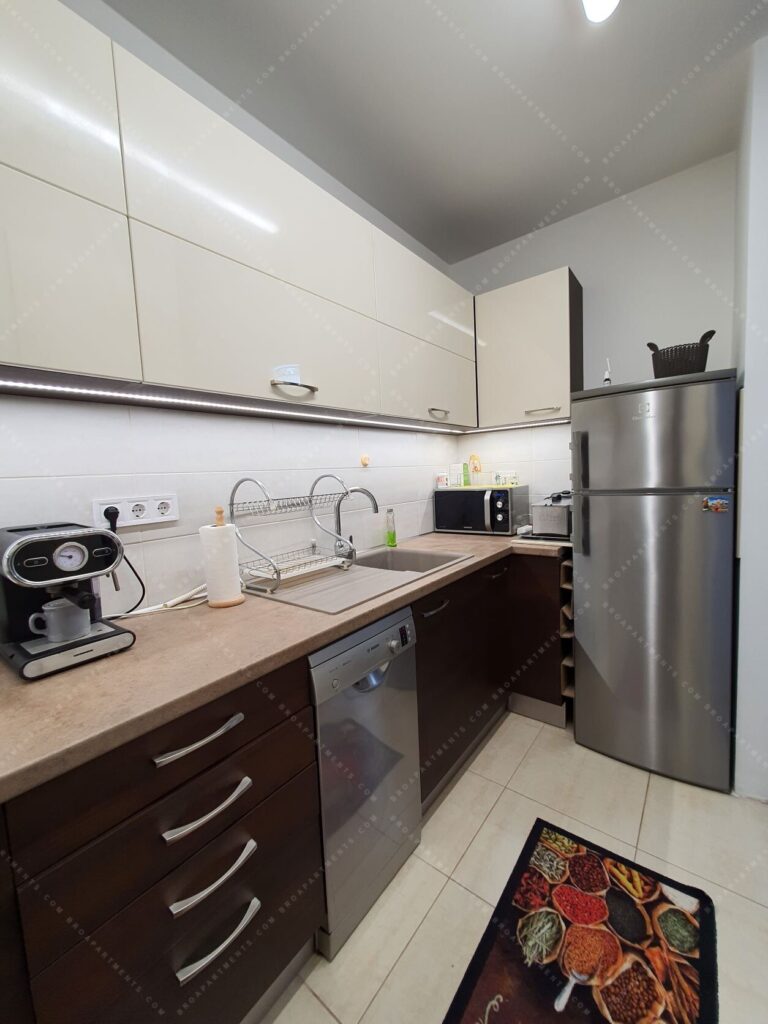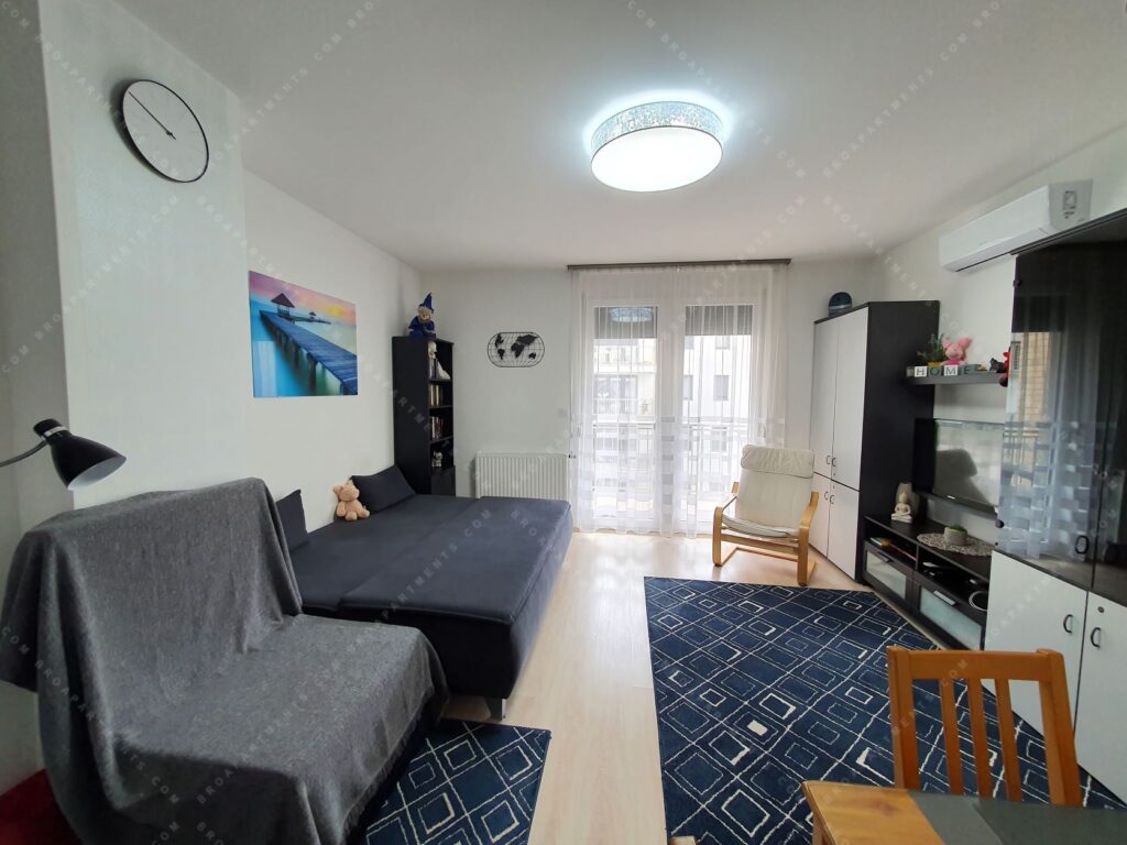 32 sqm + 7 sqm balcony, fully furnished and equipped. Separate kitchen, bright living room with comfortable sofa bed (160 cm). A/C ❄️, motorized shutters, plenty of storage, TV & Wi-Fi. Low utility costs.