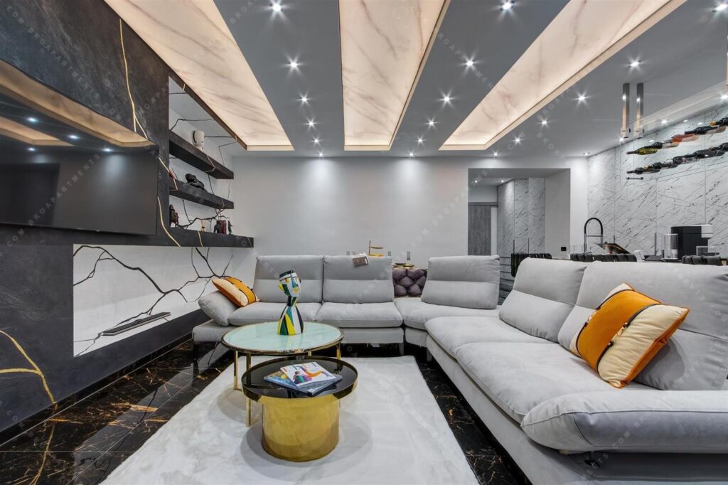 🪑 Furnishing: KARE furniture, Brokis wall & ceiling lamps, Monnalisa leather sofa (Lederland)